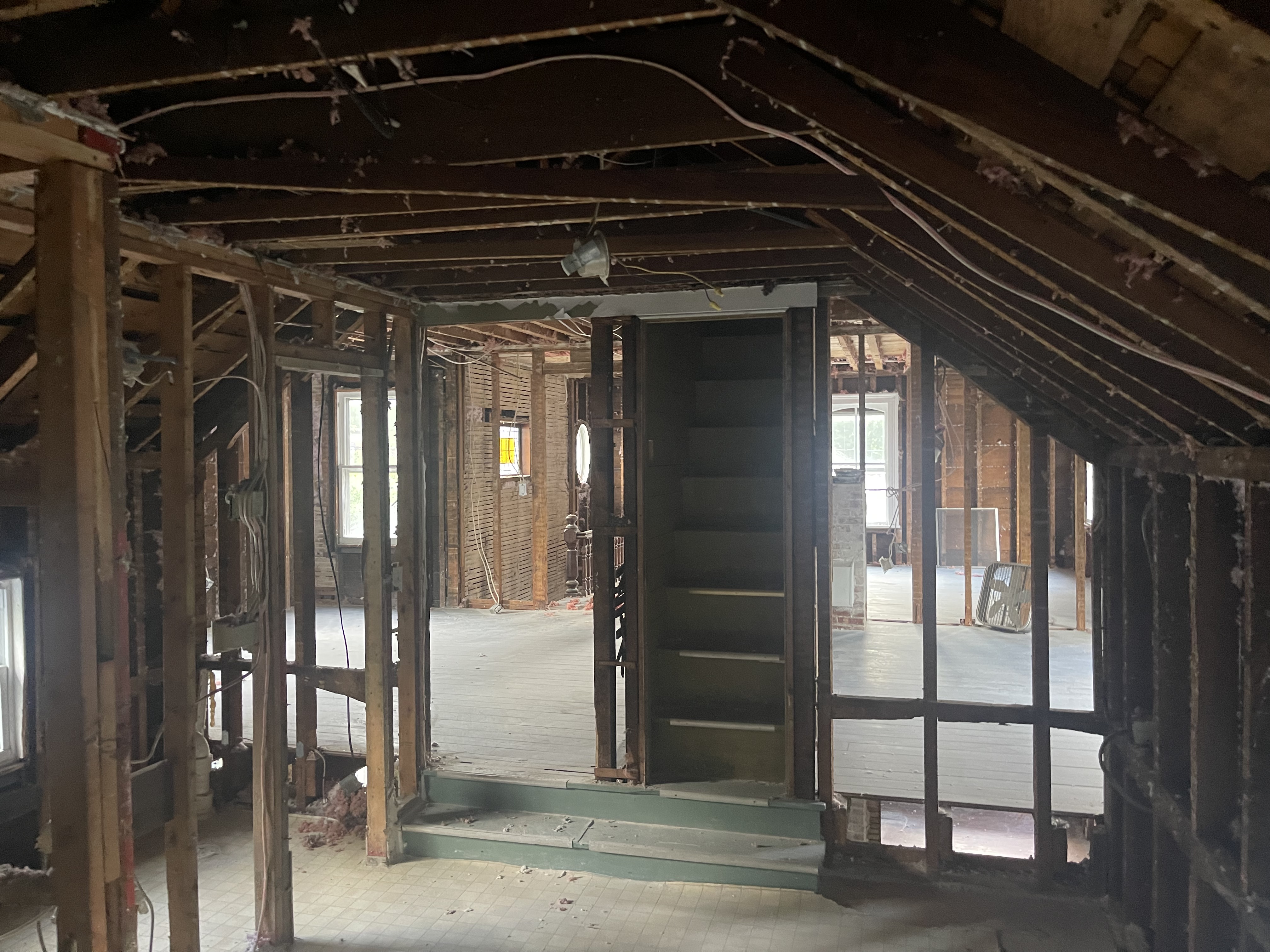 In the extension looking back into the house. The stairs to the attic was removed and will become a pull-down stairs.
