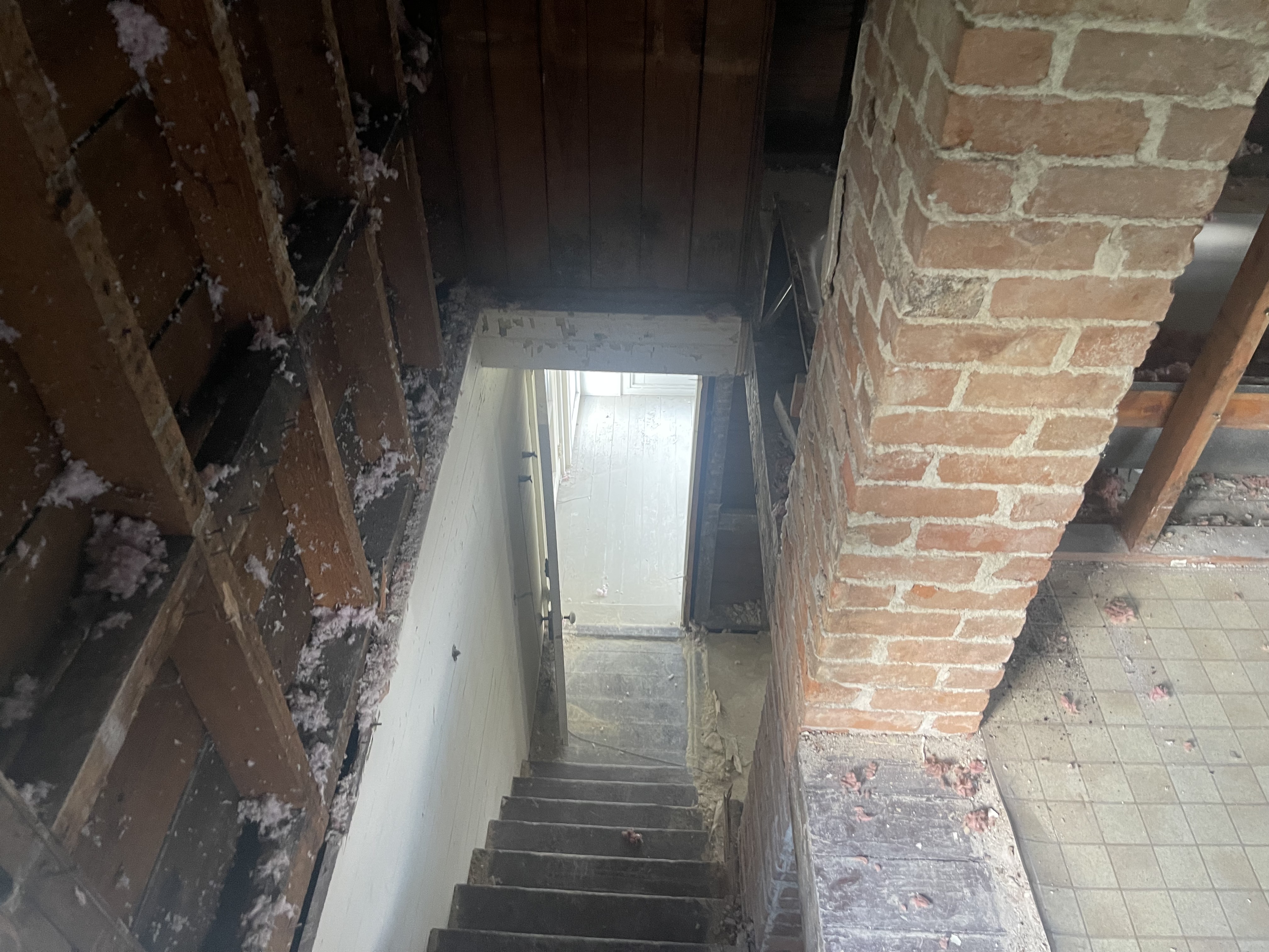Looking down the back stairs that was added in 1982 to make it a two-family.
