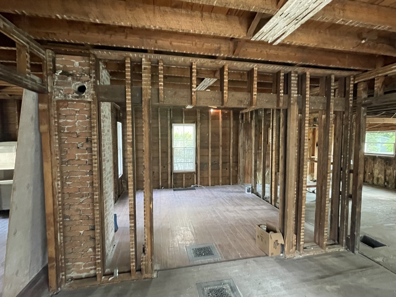 Dining room looking into what became the guest bedroom and stairs to the basement.