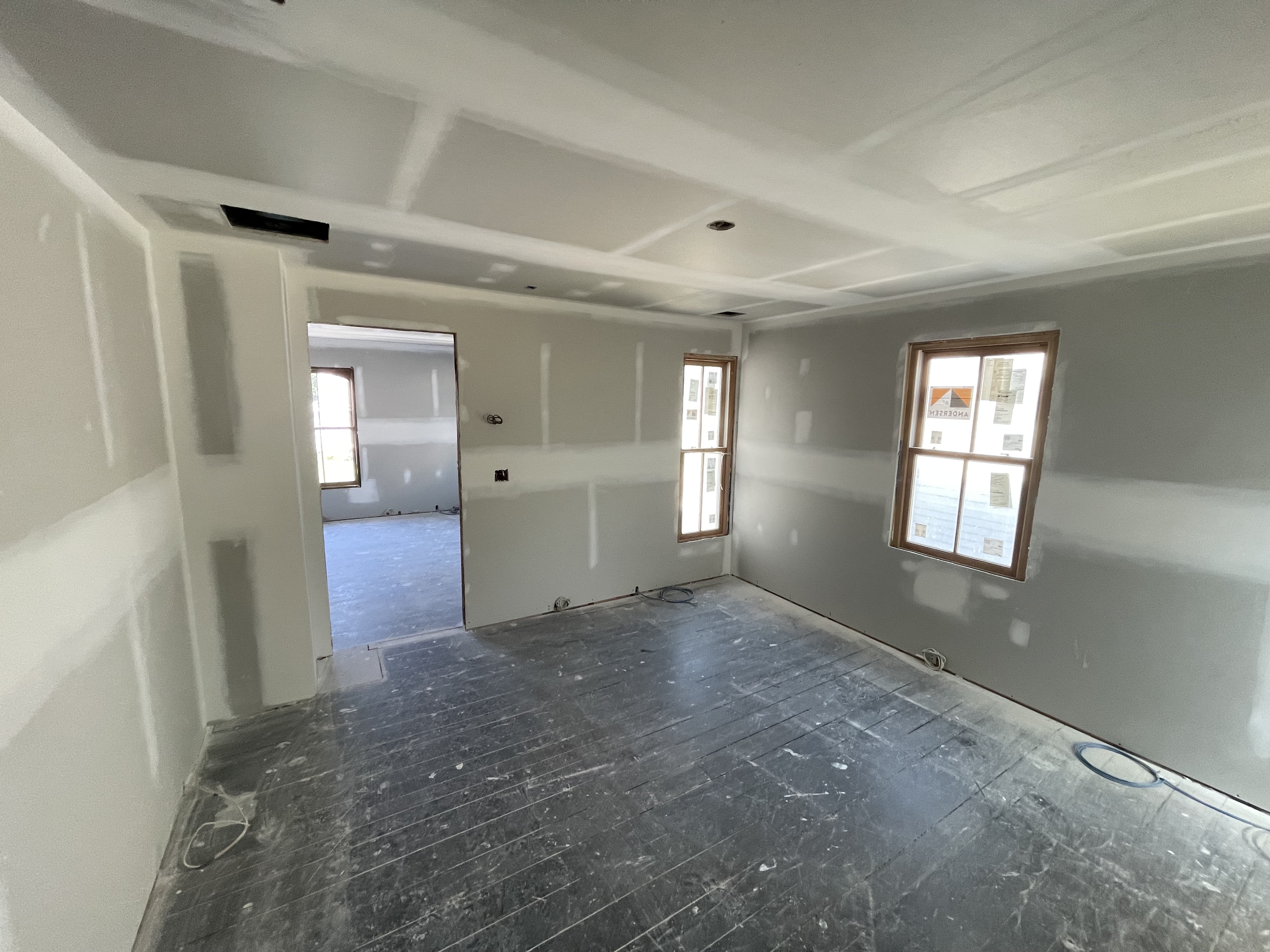 Primary bedroom, looking towards the street. Through the door is the office/family room.