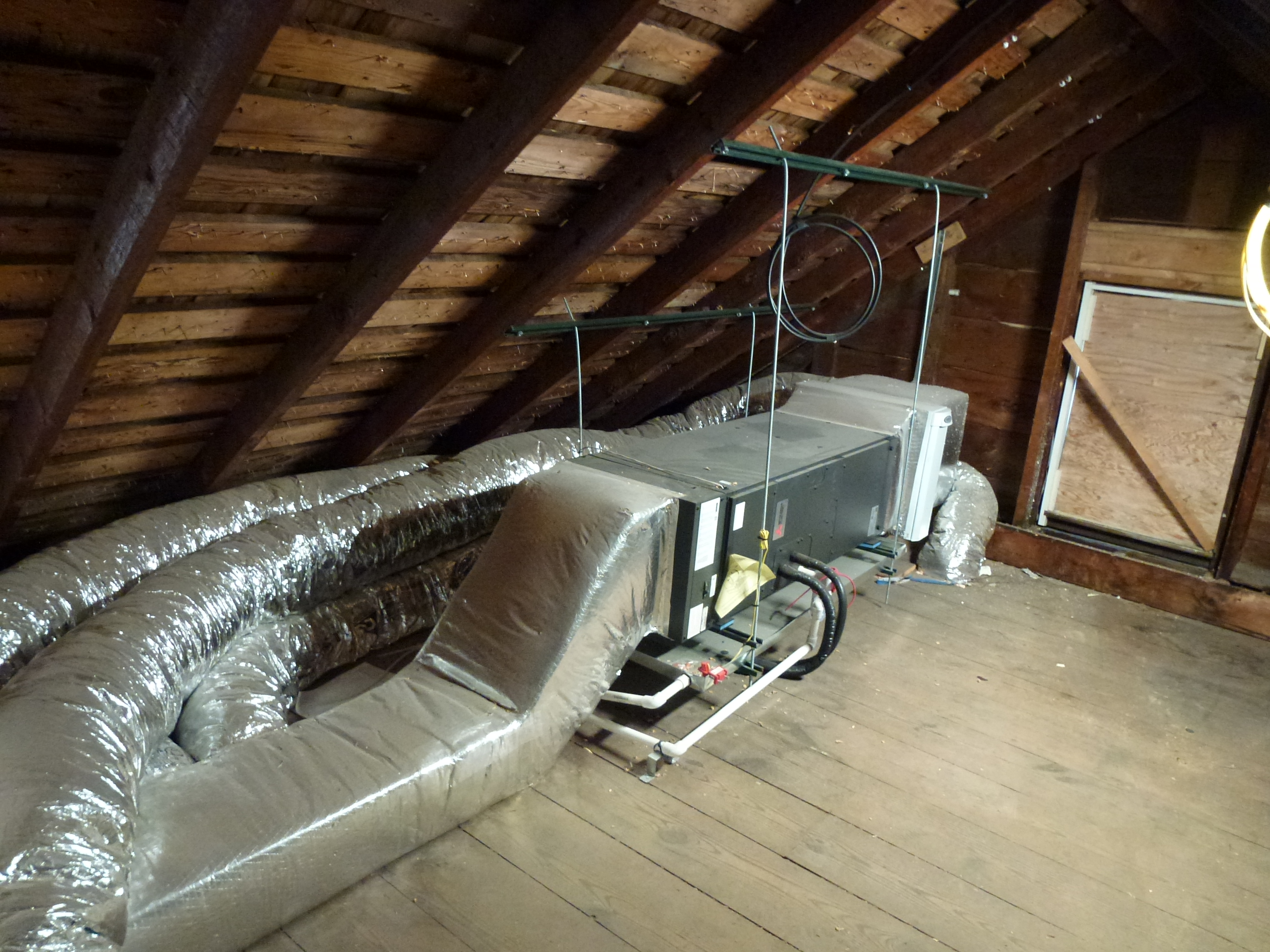 Attic. Suspending the air handler isolates noise and vibration