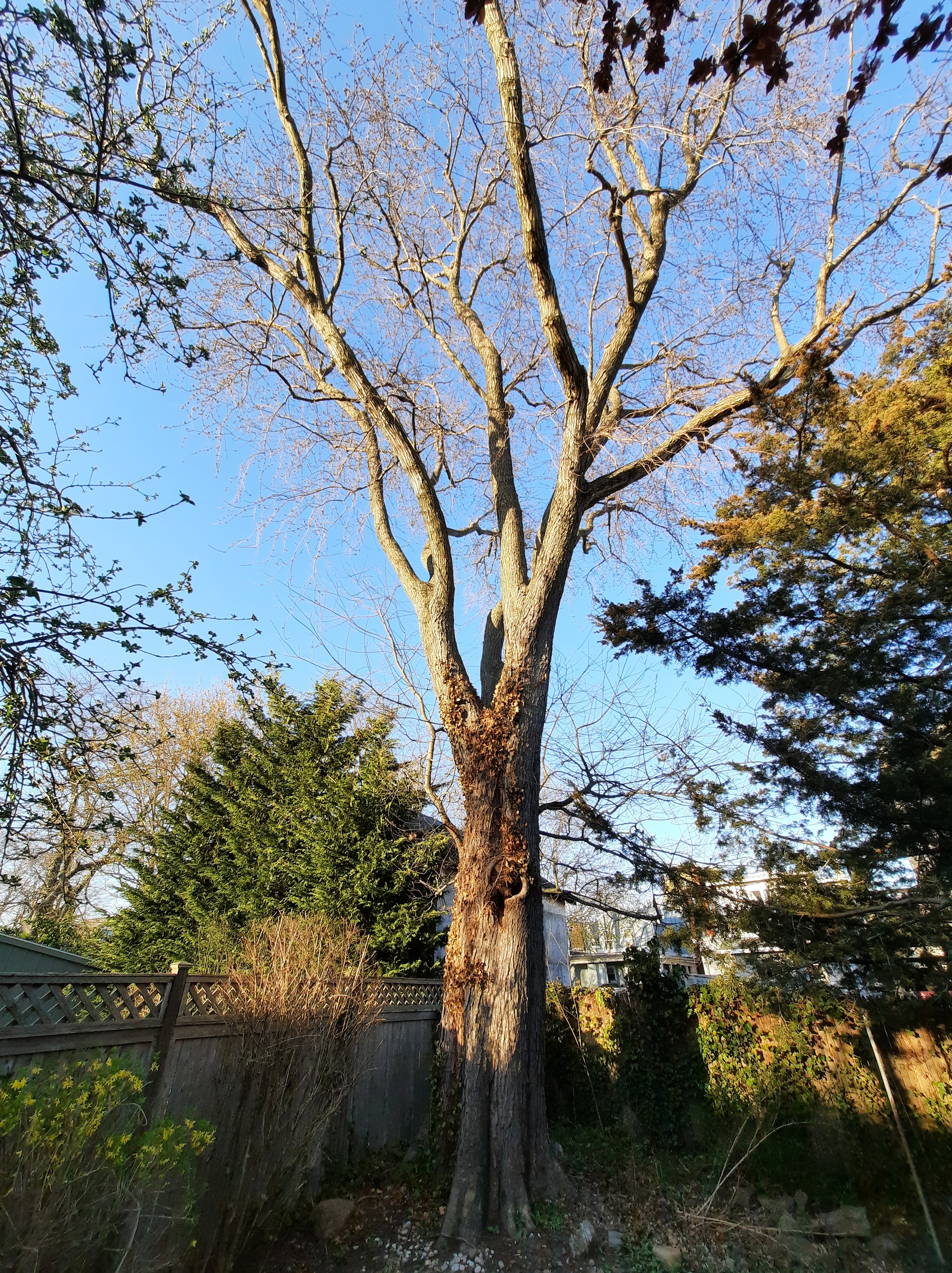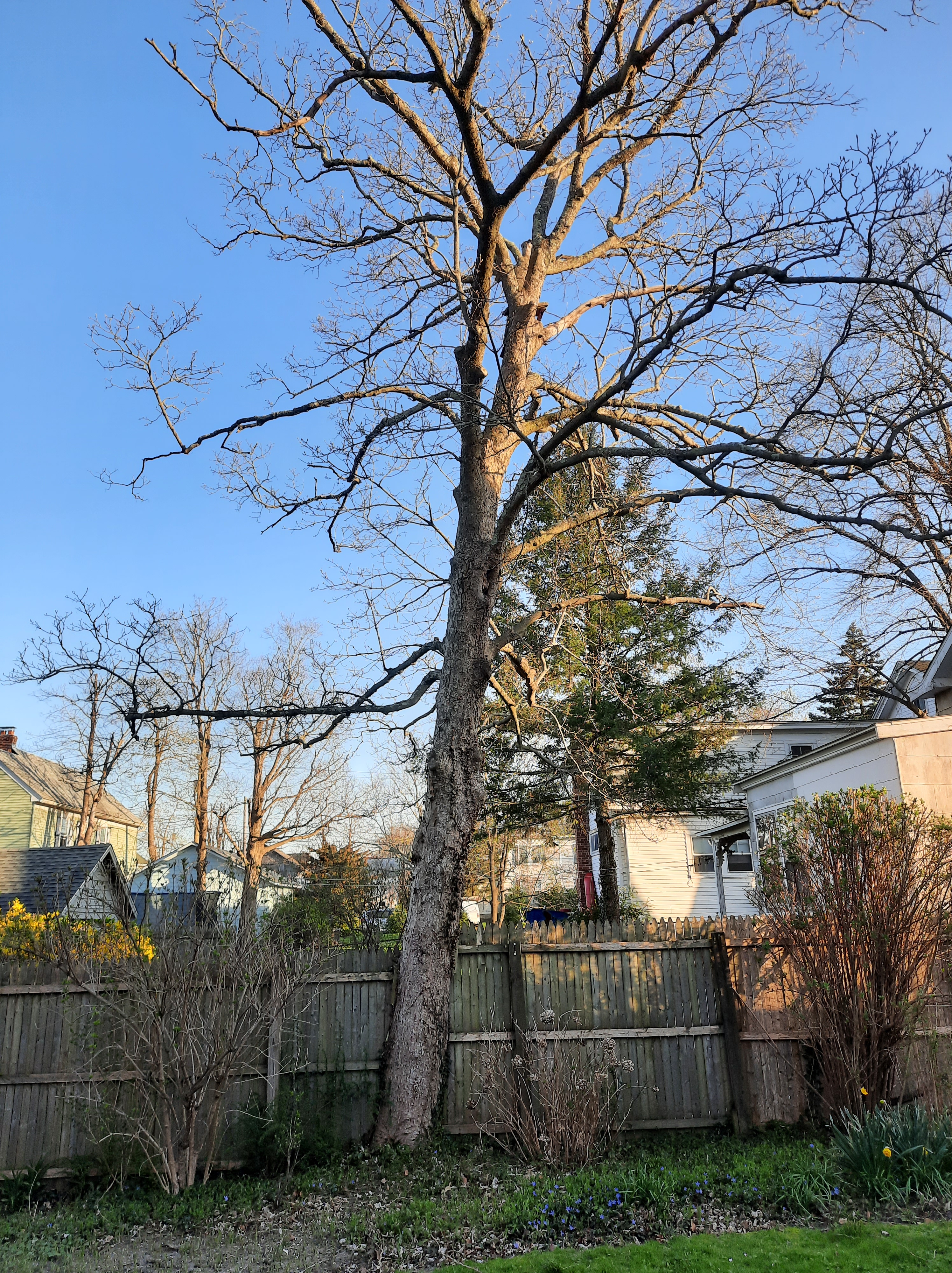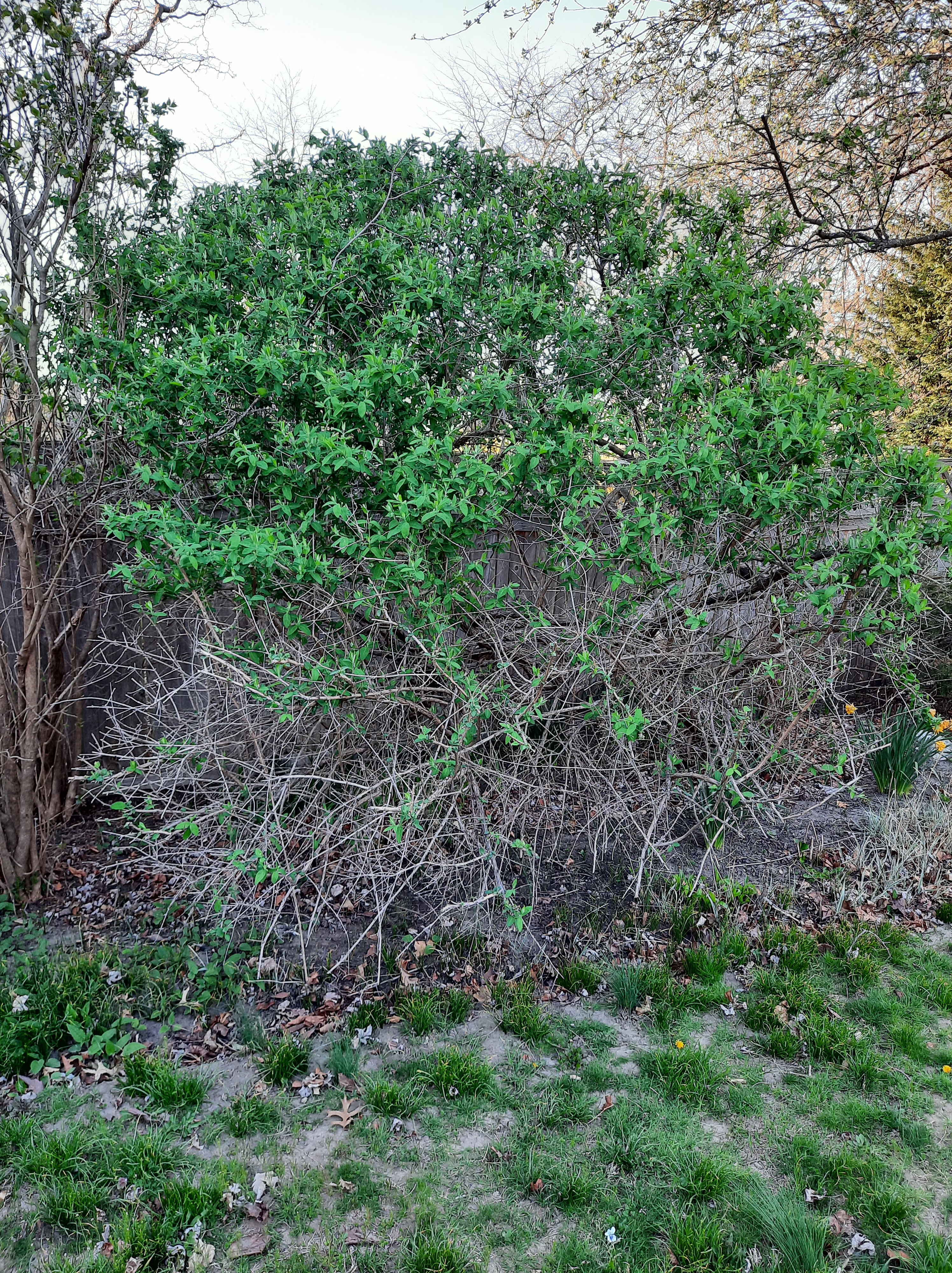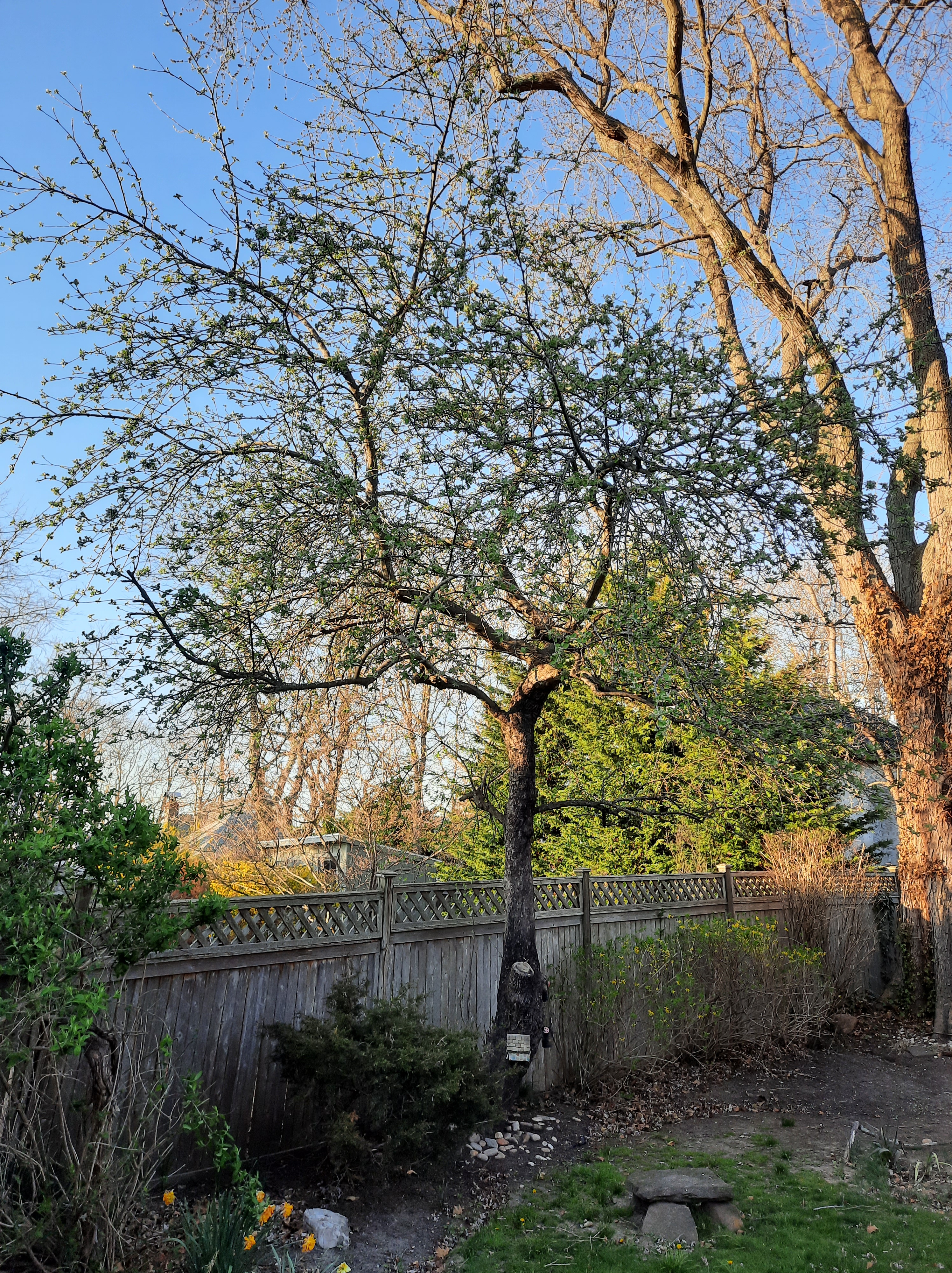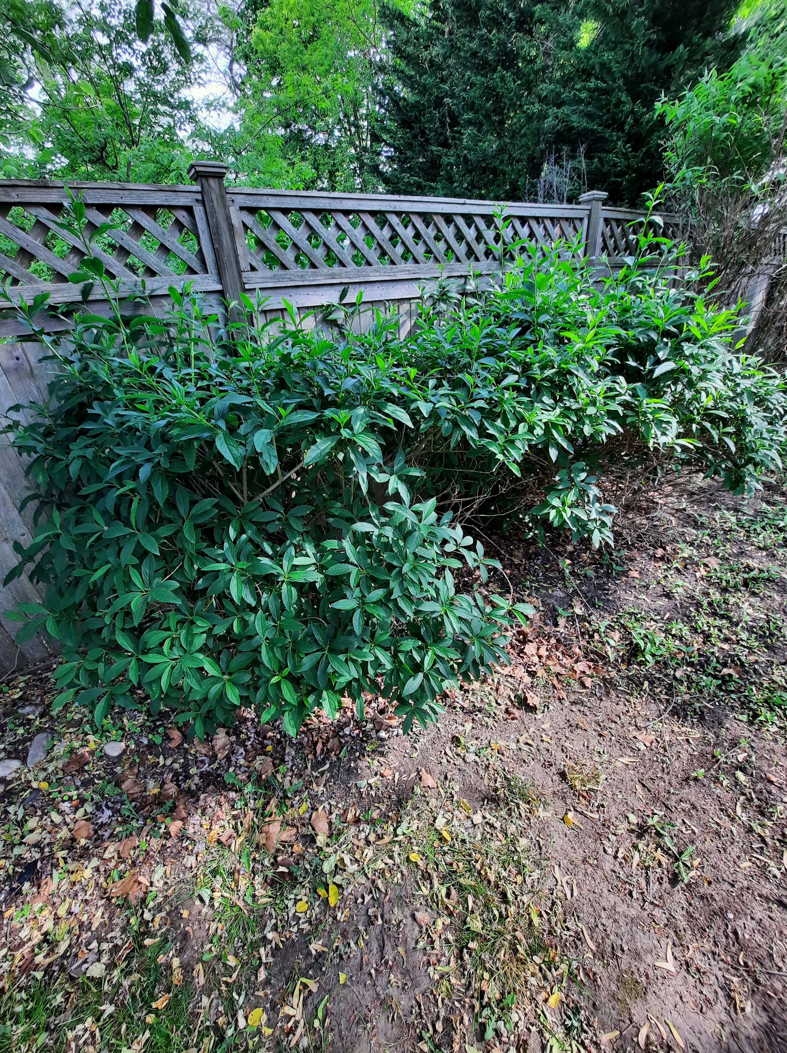 Yew. Apple. Then more forsythia. Fence is 22" onto my property.