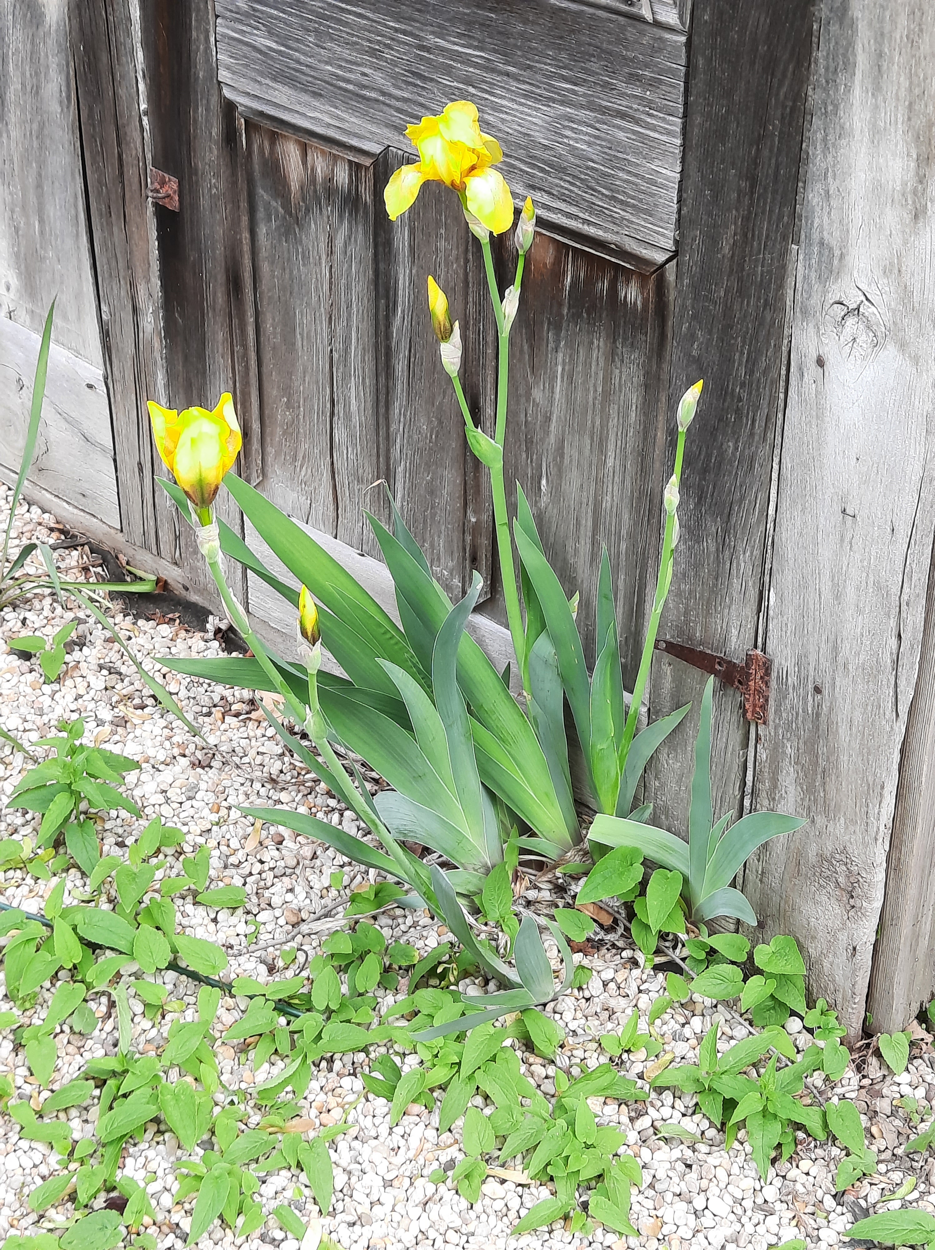 Iris in front of shed. With Lady's Thumb. Will be in way of shed reconstruction.